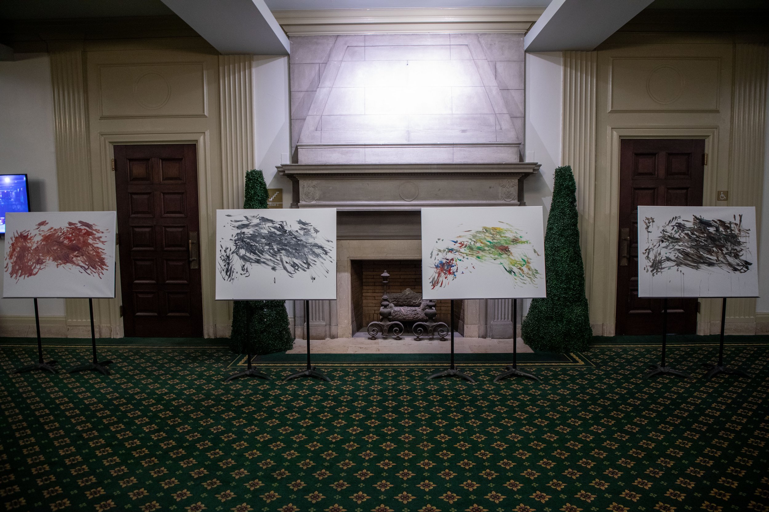 Both painting and music had been part of my practice, yet I had never thought of integrating them. For my final thesis, I chose four pieces from my repertoire to create visual scores. These works were exhibited at the Gretchen C. Valade Jazz Center in Detroit.