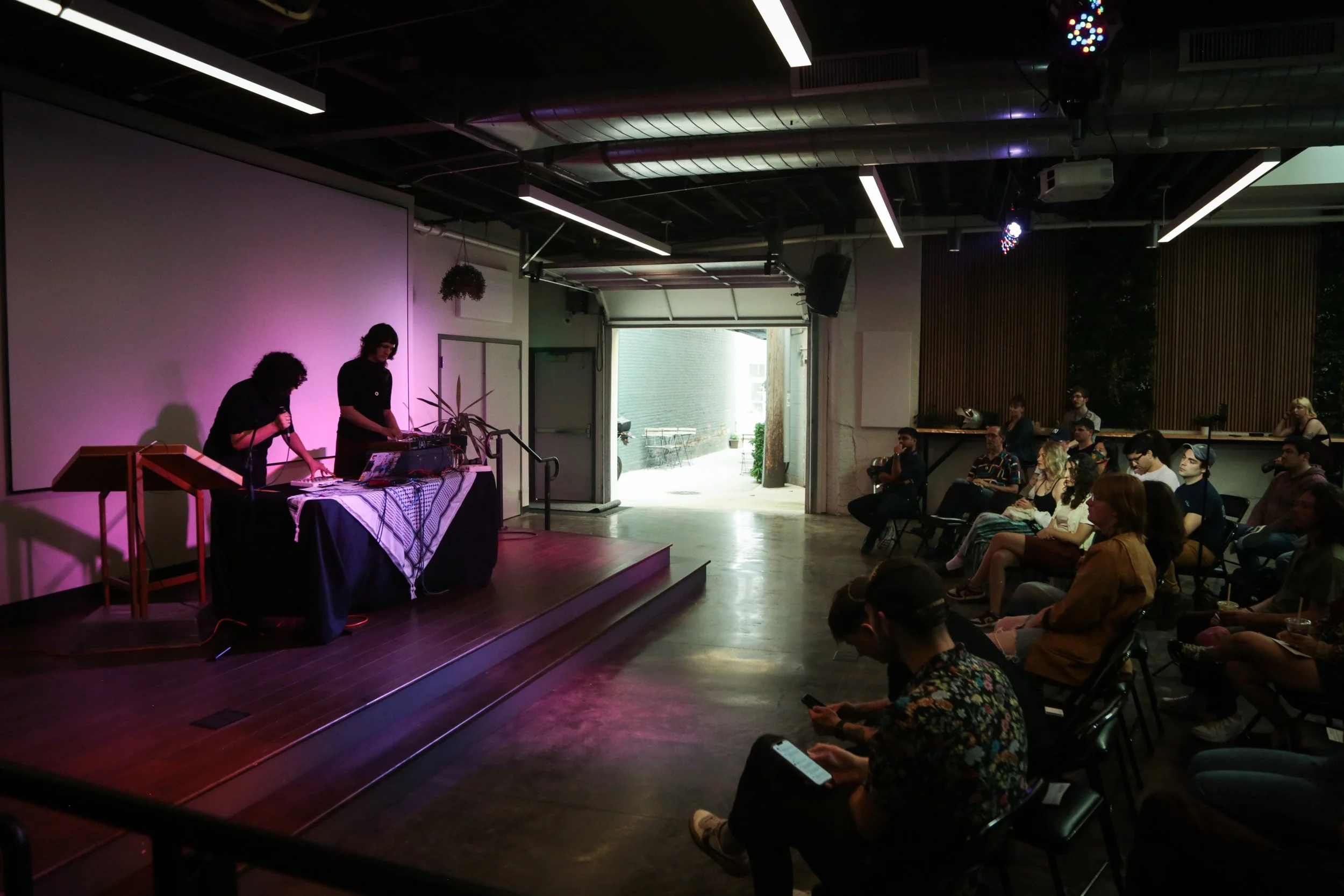 Taqsim is an Arabic electronic and experimental duo (by Layan Srour and Yvonne Pruneau), rooted in improvisation and personal soundscapes recorded in Lebanon. Drawing on these textures and a search for the feeling of home, Taqsim blends synthesizers, sampled drums, and layered soundscapes to connect Detroit to Beirut energy.
